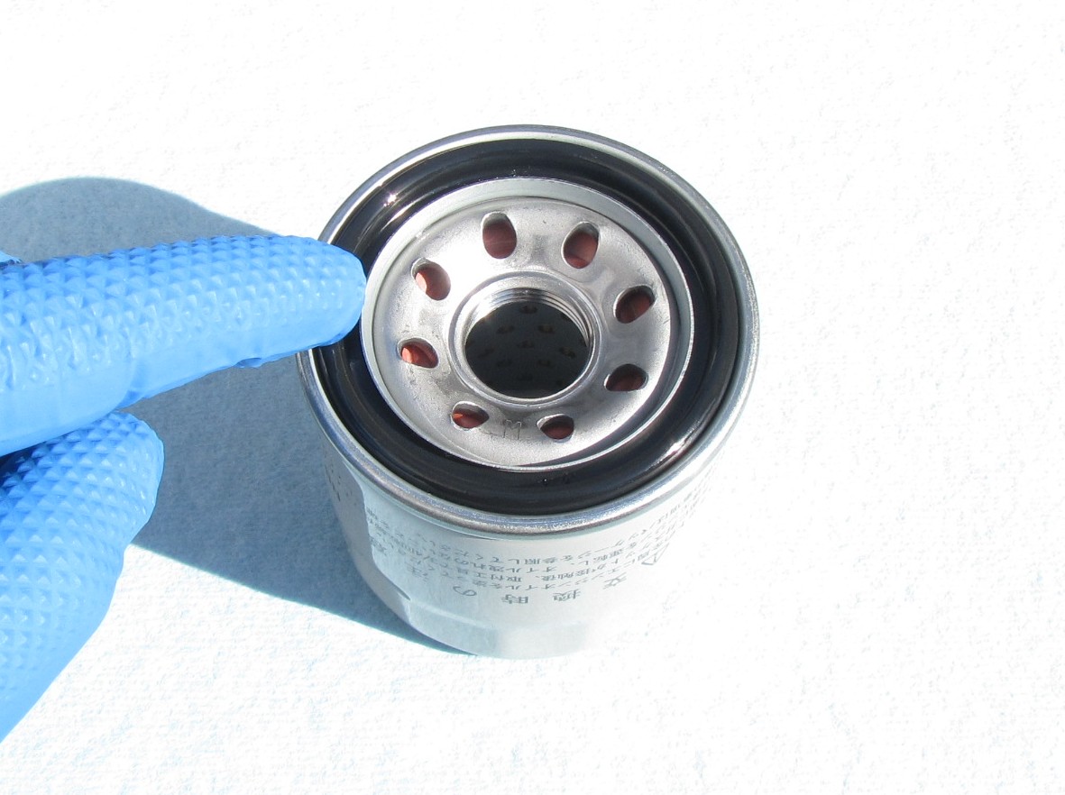 | ・ | 新しいフィルタのガスケット(パッキン)のシール面にきれいなエンジンオイルを指で薄く塗ってください。 |